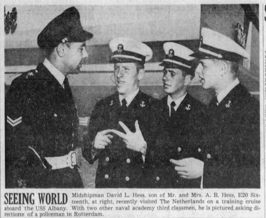 David was named to the Naval Academy by Congressman Walt Horan in March 1950. He was working as an electrician's helper at a public utility company at the time.